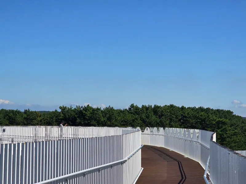 백화산 정상에 오르면 두 개의 큰 봉우리를 잇는 백화산 출렁다리가 모습을 드러냅니다. 태안의 울창한 소나무 숲을 지나 저 멀리 펼쳐지는 갯벌과 바다까지 한눈에 담을 수 있는 백화산 구름다리는 태안의 새로운 랜드마크로 자리매김하고 있습니다.