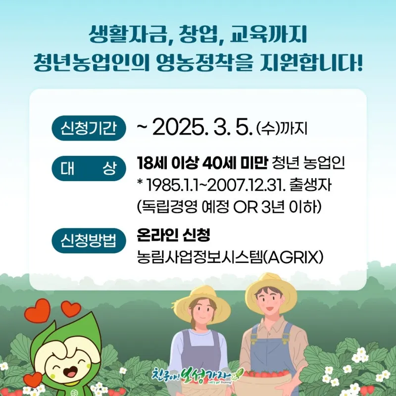 청년 농업인 여러분, 지금이 기회입니다! 🌾