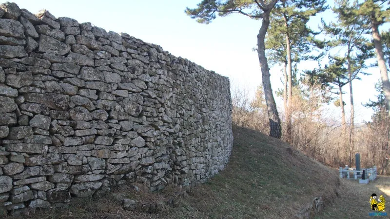 사람의 머리보다 약간 큰 돌을 산성 축성 방식으로 쌓았습니다.