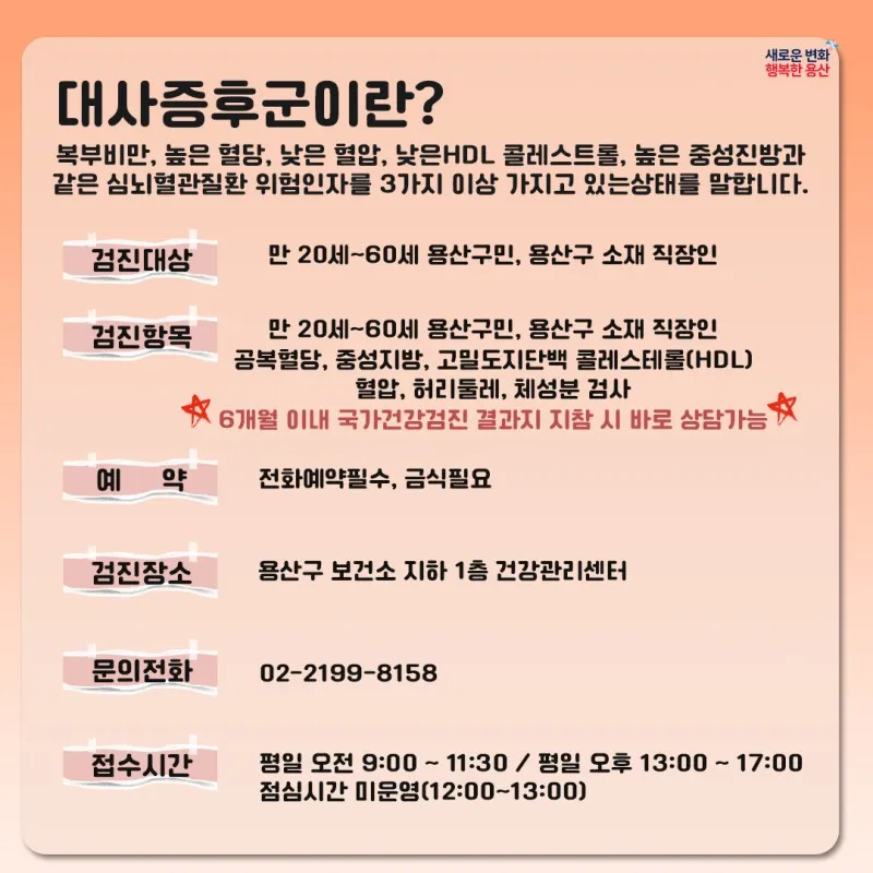 🌸용산구와 함께하는 대사증후군 무료검사🌸