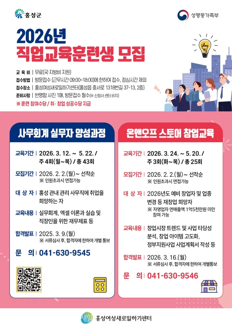 홍성여성새로일하기센터 2026년 직업교육훈련생 모집