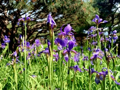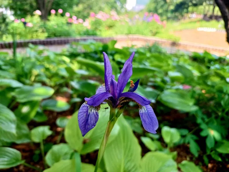 군락으로 심어 둔 꽃창포의 보랏빛이 보는 이의 마음을 들뜨게 하는가 하면