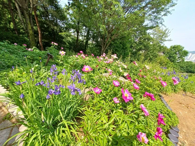 작약꽃, 창포, 매발톱, 애기똥풀꽃이 바람에 살랑거리고 작약 꽃의 알싸한 향기가 야생화 동산을 가득 채우고 있었기 때문이다.