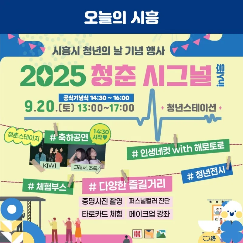 시흥시는 오는 9월 20일 토요일, 청년스테이션에서 2025년 시흥시 청년의 날 기념 행사 <청춘시그널 in 시흥>을 개최합니다.