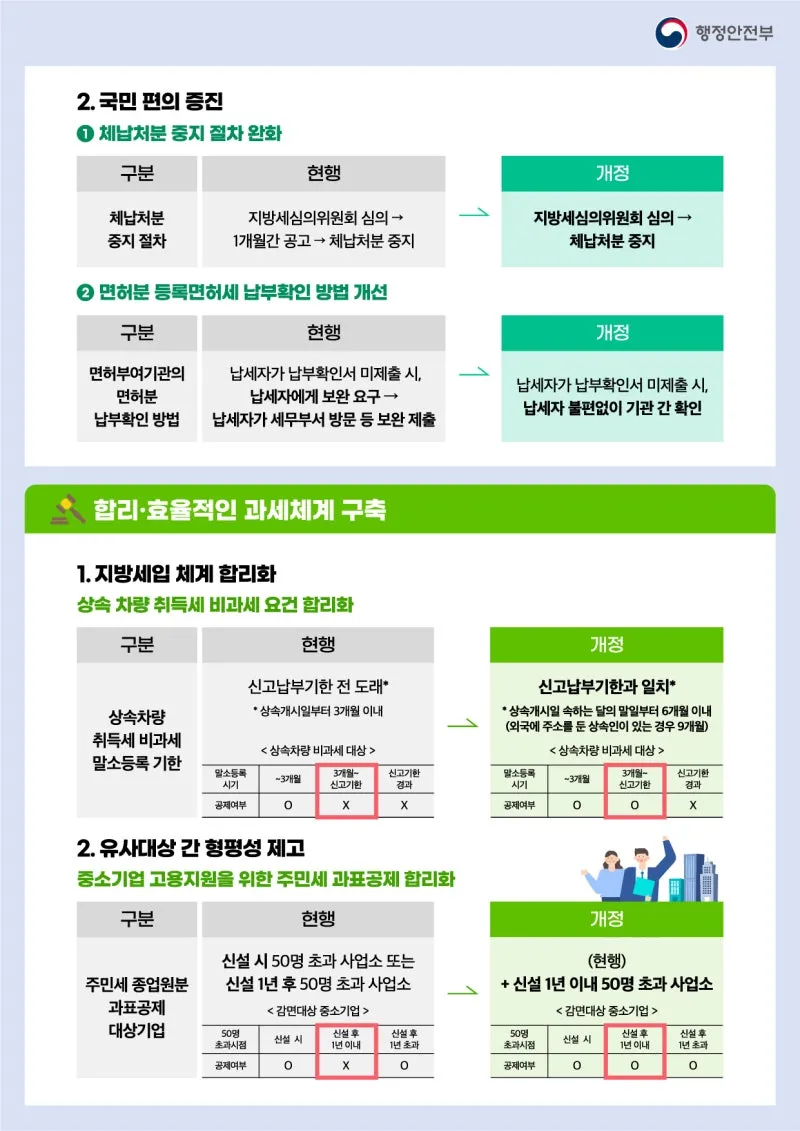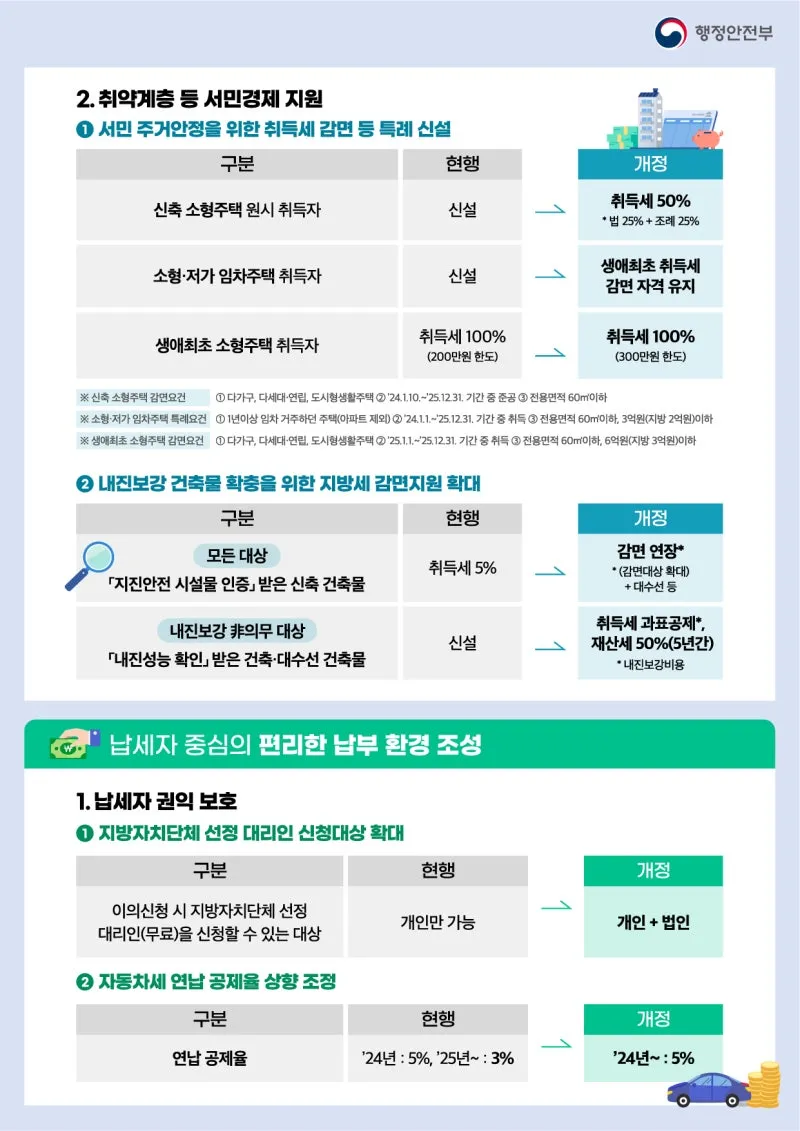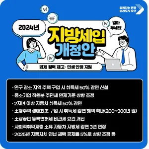 2024년 지방세입 개정안 ✔ | 인구감소 지역 취득세 감면 · 두 자녀 가정 자동차 취득세 50% 감면 등