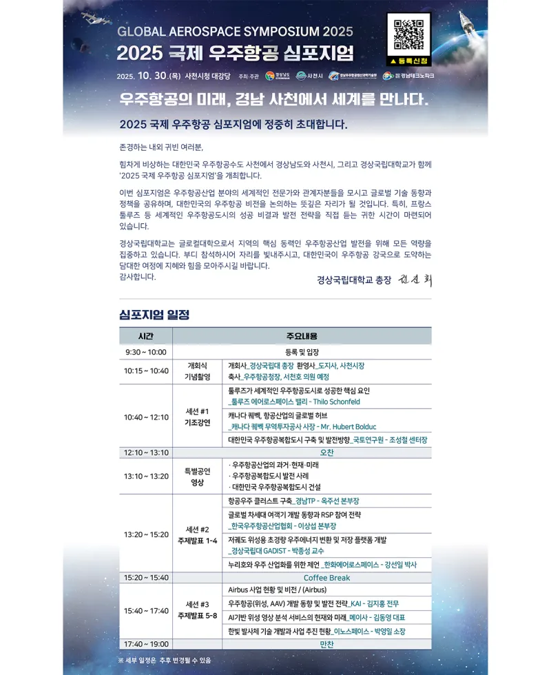 「2025 국제 우주항공 심포지엄(Global AeroSpace Symposium)」이 열립니다.