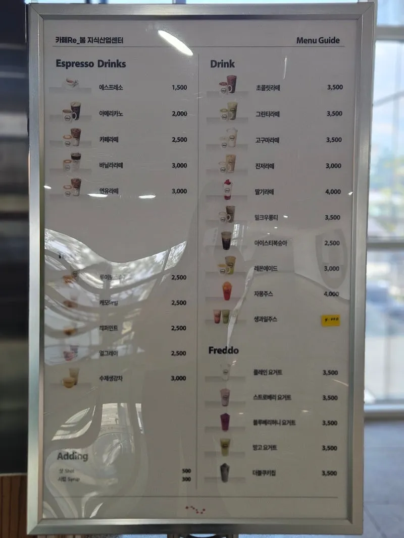 아메리카노는 2천 원, 생과일주스는 4천 원으로