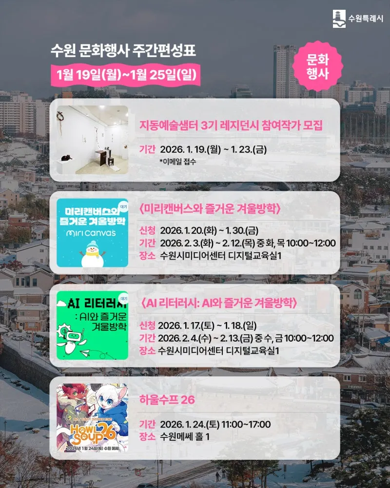 🐸수원 [1월 넷째 주] 문화 행사&스포츠 경기 일정 안내
