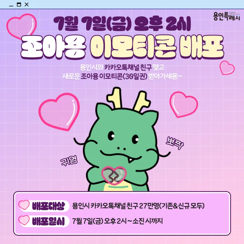 [용인소식ON] 7월 7일(금) 오후 2시부터 조아용 신규 이모티콘을 배포합니다!