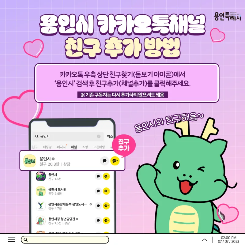 ▼ 용인시 카카오톡 채널 친구 추가하기 ▼