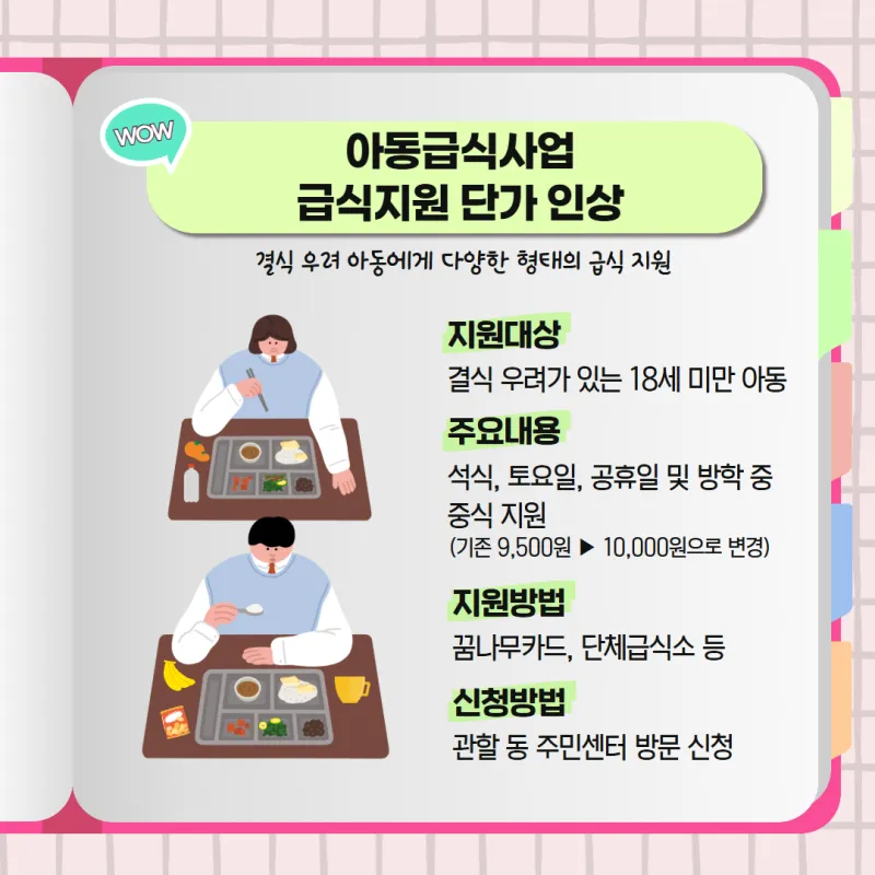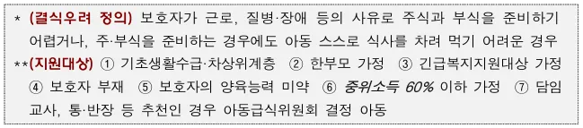 아래 급식지원 대상 해당 아동