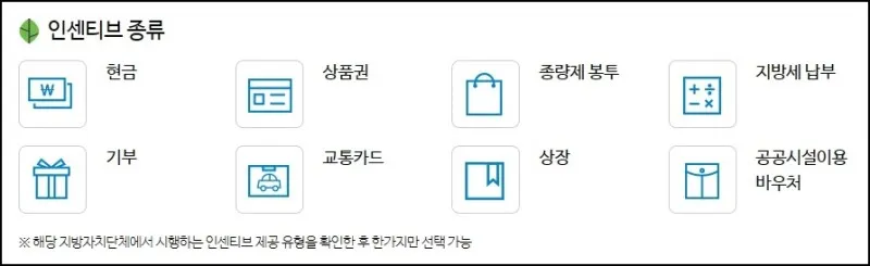 지방자치단체에서 시행하는 인센티브 제공 유형에 따라 한 가지만 선택이 가능한데요,