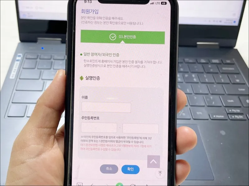 저는 모바일을 이용해 "탄소포인트제 누리집(cpoint.or.kr)에서 가입했습니다.