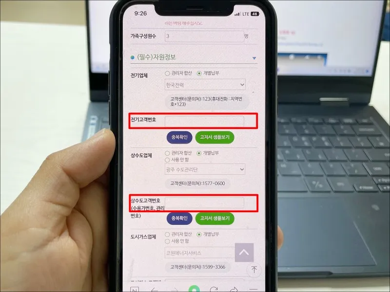 자원정보 입력 시 전기, 수도, 도시가스 고객번호(납부번호, 관리번호)가 필요하니 회원가입 진행 전 고객번호를 미리 준비하면 편리합니다.