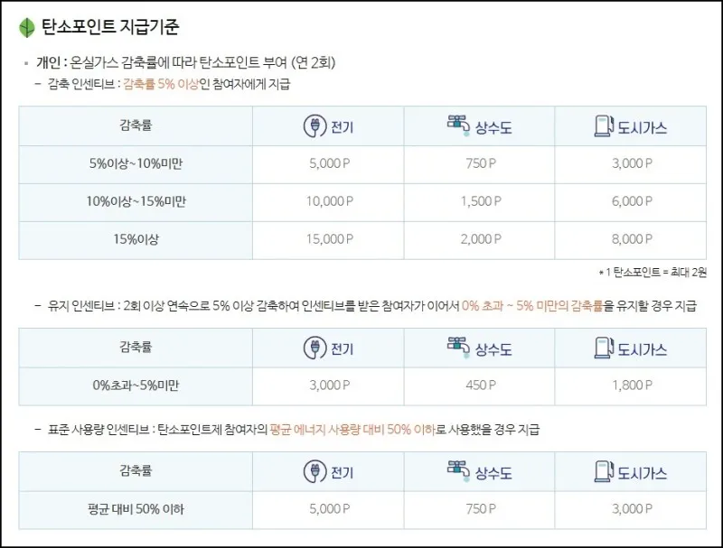 탄소포인트의 지급기준은 다음 3가지가 있습니다.