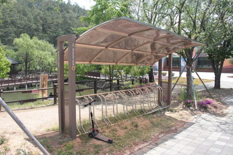 우륵지 산책로 옆에 자전거 보관대도 세워져 있어요. 누군가 세워둔 킥보드가 넘 귀엽네요.