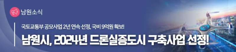 남원시, 2024년 드론실증도시 구축사업 선정!|시민이 체감할 수 있는 드론서비스 제공을 위해 최선을 다하겠습니다!