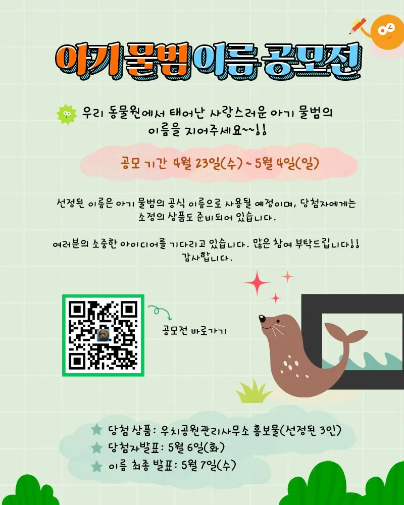 우치동물원에서 태어난 아기 물범 이름을 지어주세요!