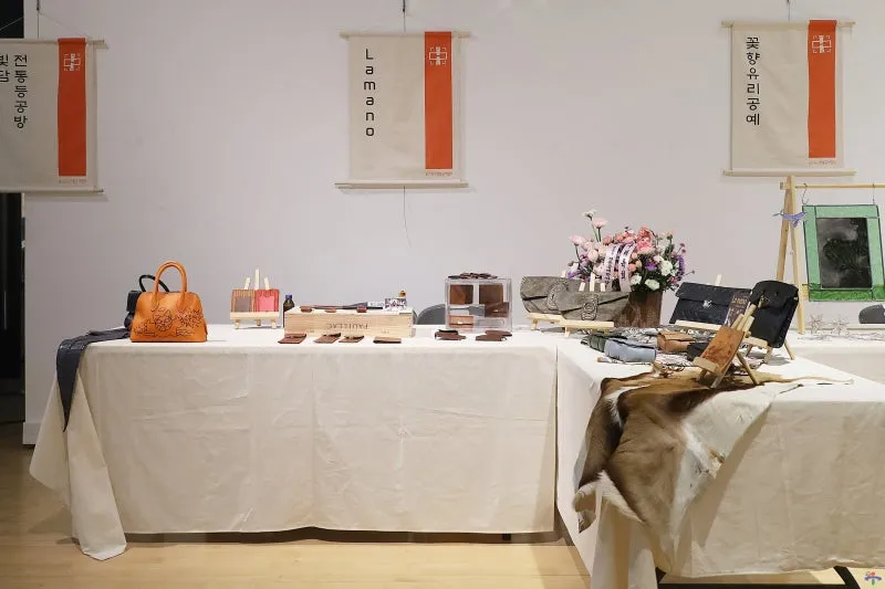 각 테이블마다 구역을 나누어 공예가가 본인의 작품을 선보이도록 준비하였고요.