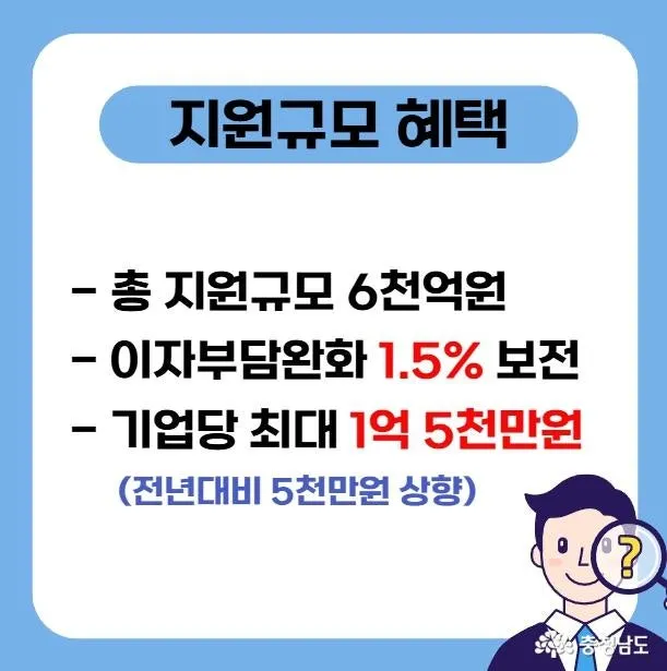 2) 이자 부담 완화 - 정책자금 대출 금리 중 1.5%를 충청남도가 보전