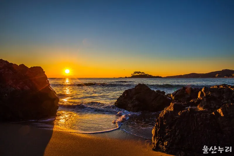 명선도는 진하해수욕장 한가운데 자리한 섬으로, 낮과 밤 서로 다른 매력을 지니고 있습니다.