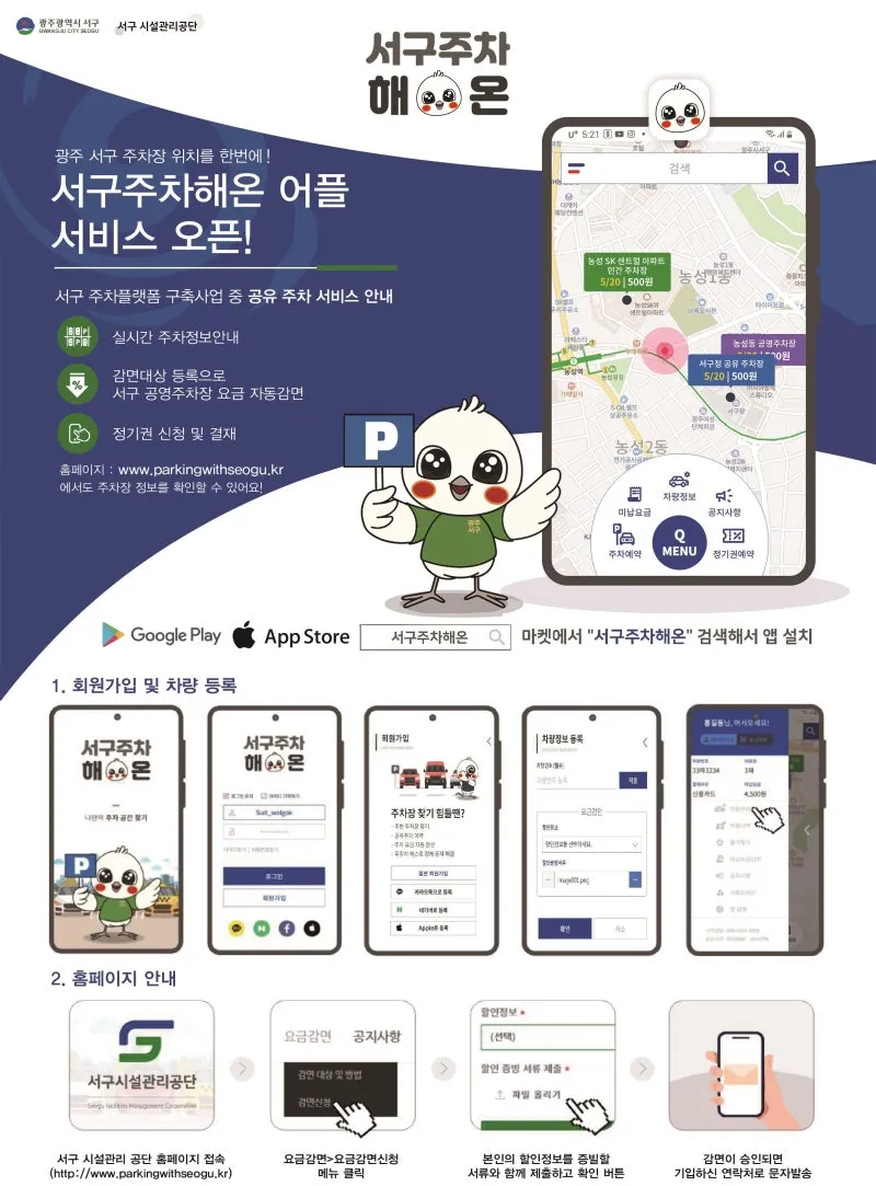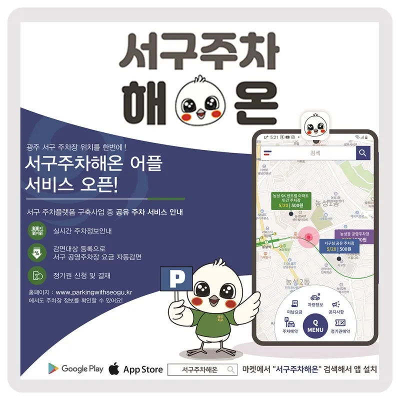 서구 주차정보는 ‘서구주차해온’ 어플을 사용하세요!