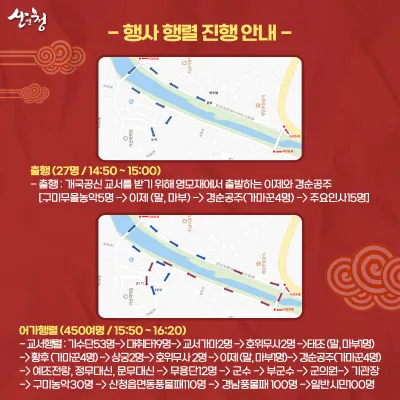 관객들과 함께 길을 걷는 행렬 공연까지 펼쳐진다고 하니 오셔서 우리의 전통 공연을 즐겨주세요! : )