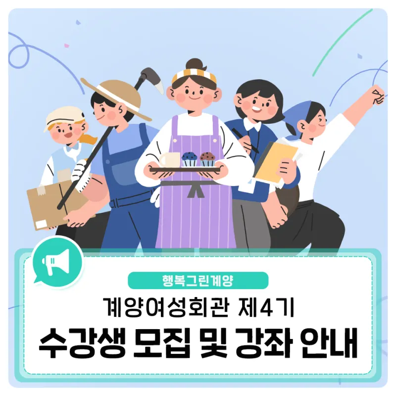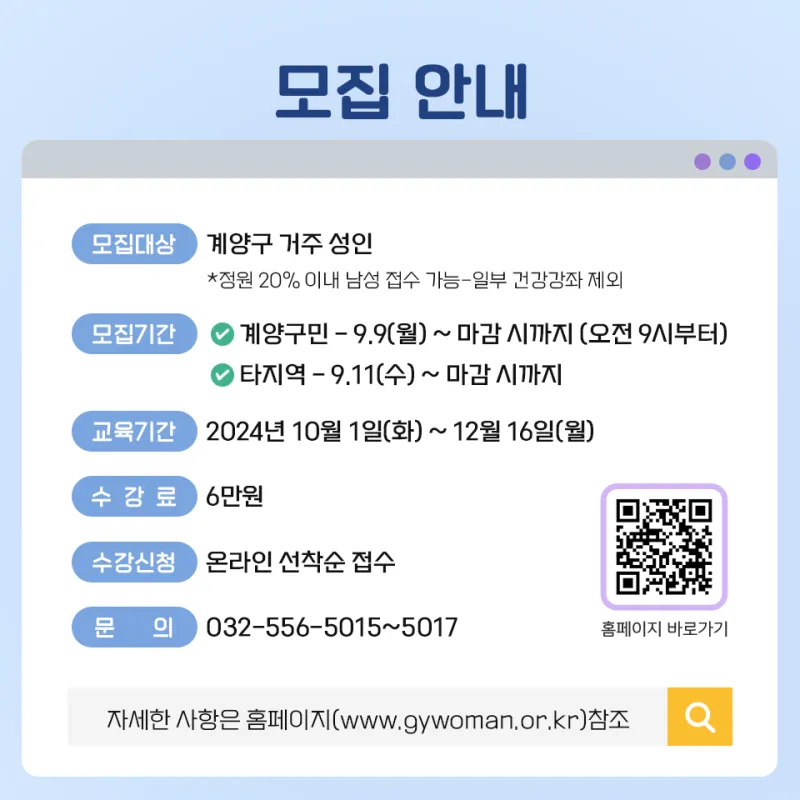 계양여성회관에서 2024년 제4기 수강생을 모집 중에 있습니다.
