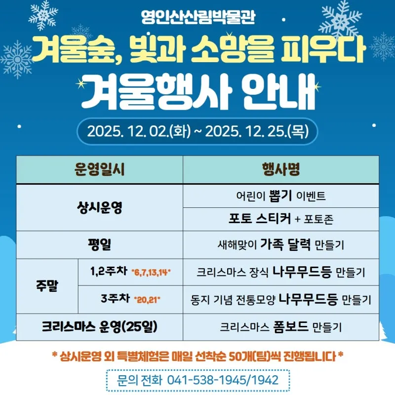 영인산산림박물관 겨울행사 안내