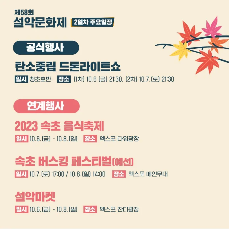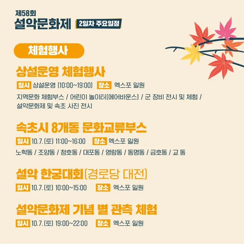 🍁 제 58회 설악문화제 2일차 일정 안내 🍁