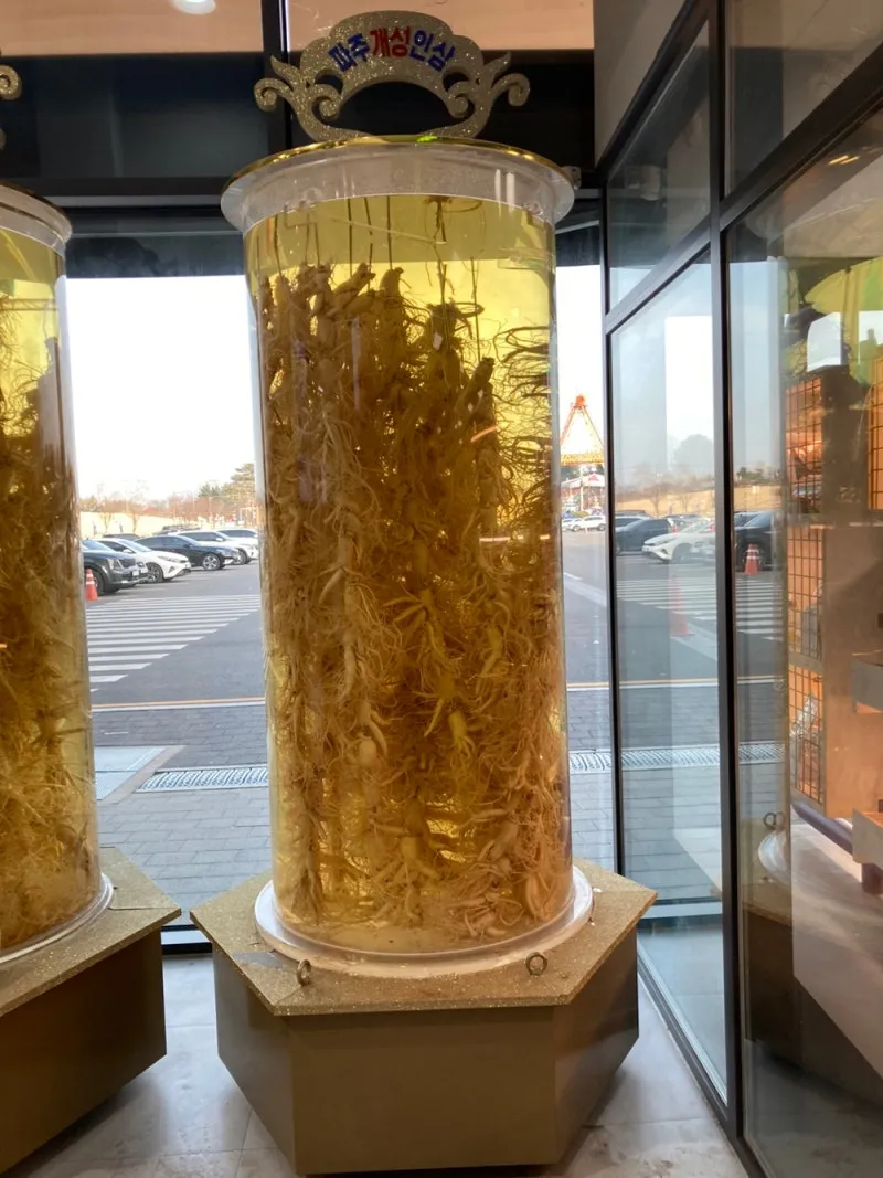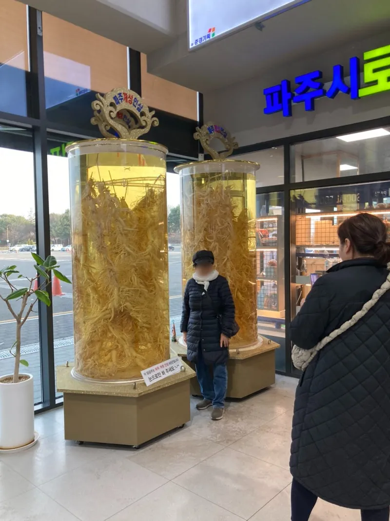 ‘ 파주 개성 인삼 6년근 ’으로 채워진 거대한 담금주가 보입니다.