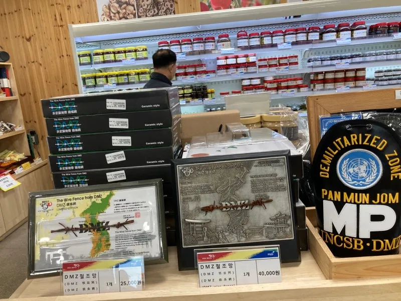 채소가 적고, DMZ 관련 기념품 판매대가 있었습니다.