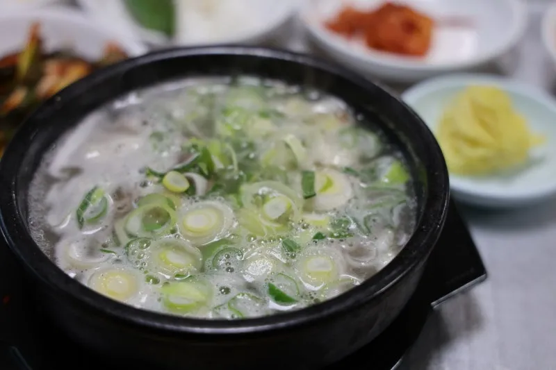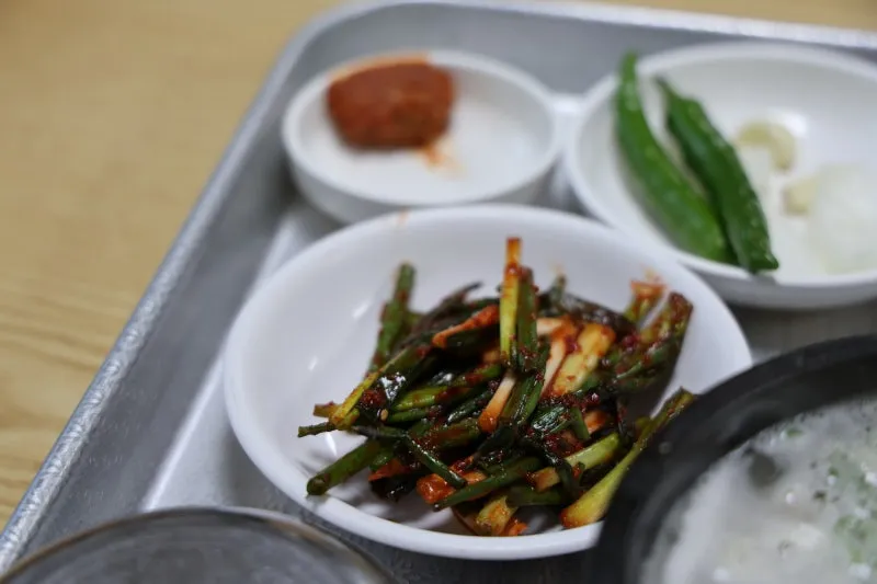 울주만의 맛이 담긴 한우곰탕에는 가마솥에 하루 종일 우려낸 사골 육수와 등심, 양지고기 등이 들어가 있는데 반찬으로 나오는 파김치와 궁합이 잘 맞습니다.