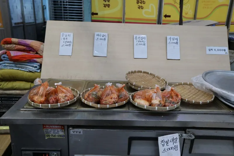 울주군 시장에서 팔고 있는 김치도 맛이 좋아 보입니다.
