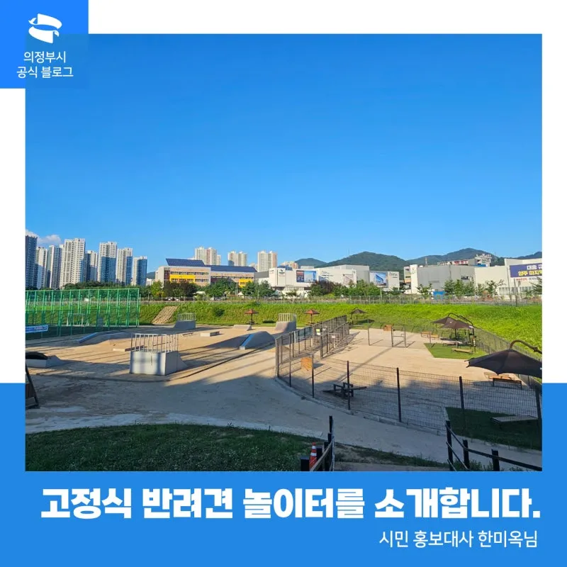 우리나라 국민 3명 중 1명은 반려 인구라고 합니다. 반려동물에게 유치원, 장례 등 생애주기 기반 서비스 업체도 확산되고 있는데요. 1인 가구 증가, 고령화 그리고 정서적인 교감을 중시하는 사회적 분위기 속에 반려견은 단순히 애완동물이 아닌 가족의 테두리 안으로 들어와 있은지 오래죠. 이런 분위기 속에 의정부 최초 고정식 반려견 놀이터가 생긴 것은 정말 반가운 일입니다.