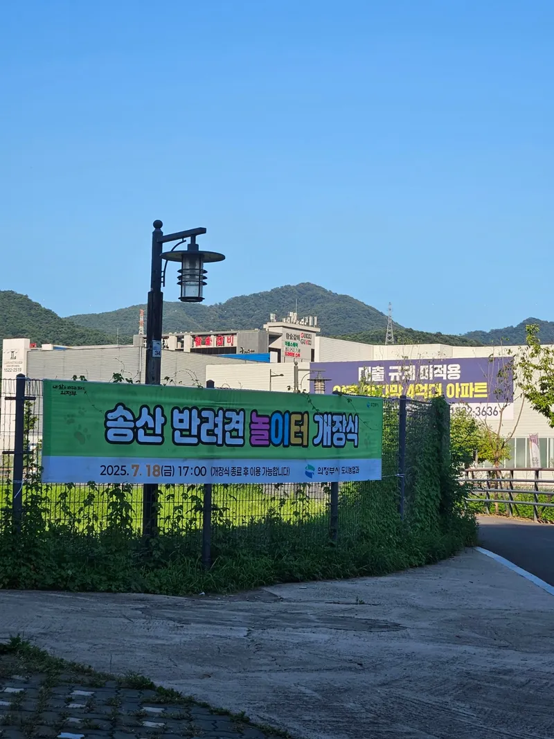 주차: 의정부 송산 반려견 놀이터는 주차장이 따로 없습니다. 푸른마당근린공원 주차장을 이용하시거나 민락 1저류지 옆쪽 도로변에 임시 주차공간이 있습니다.