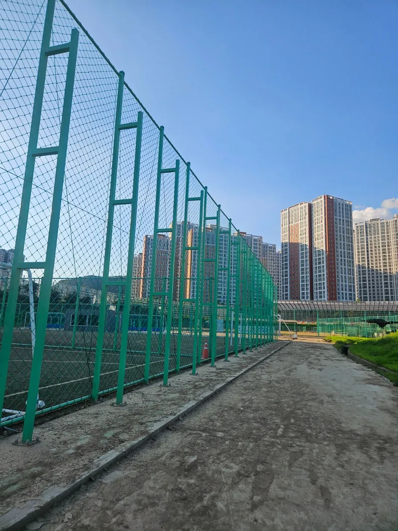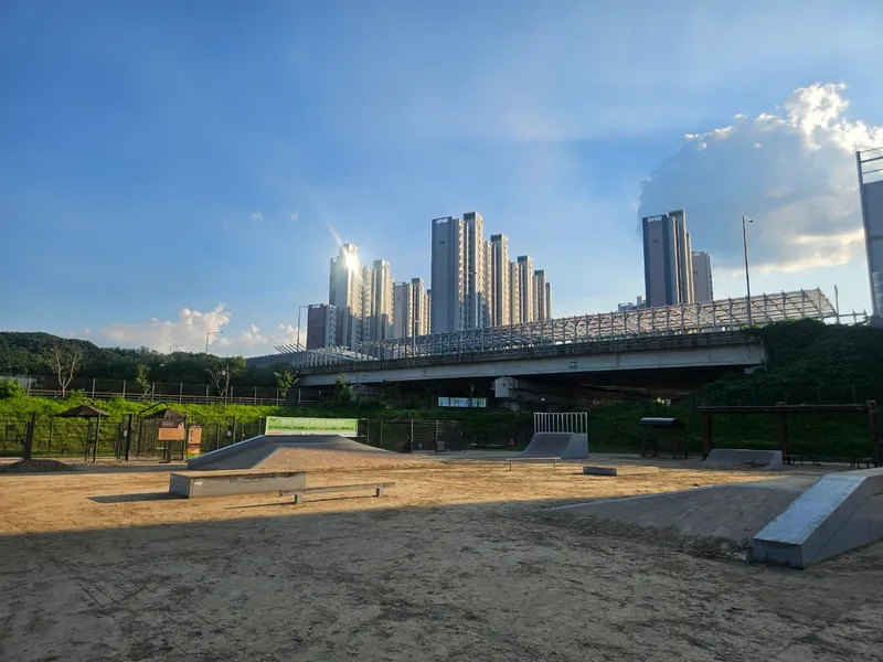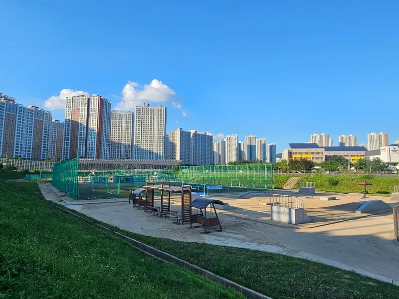 의정부 민락동의 송산 반려견 놀이터는 주변에 다양한 체육시설이 밀집해 있어 지역 주민들에게 매우 유용한 공간으로 자리 잡고 있습니다. 반려견 놀이터 바로 옆에는 풋볼장, 농구장, 야구장이 나란히 위치해 있어 운동과 여가 활동을 동시에 즐기기에 좋습니다. 또한 인근의 활기체육공원에는 다양한 운동기구와 산책로가 마련되어 있고, 푸른마당공원에는 테니스장이 조성되어 있어 유휴지를 효율적으로 활용한 좋은 사례로 평가됩니다.