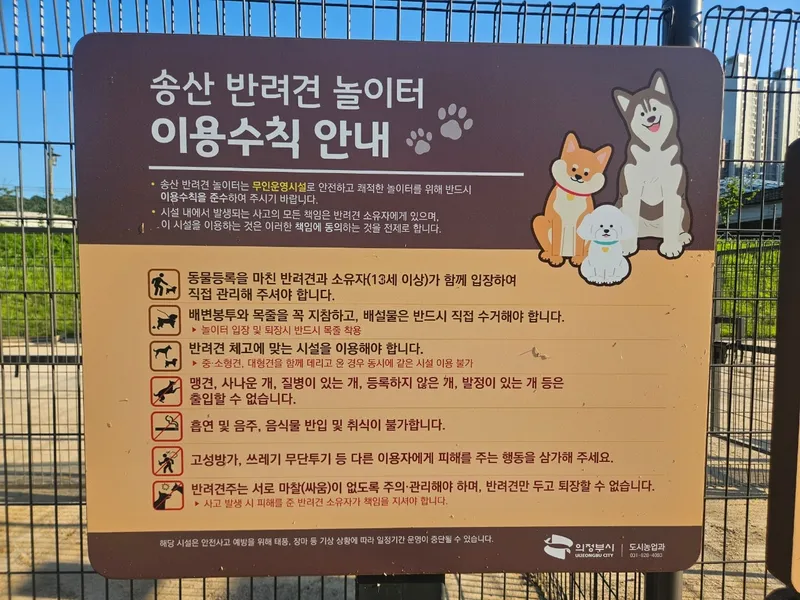 규칙을 잘 지키면 보호자끼리도 신뢰감 있게 이용할 수 있고, 놀이터가 지속적으로 운영될 수 있는 기반이 됩니다. 결국, 이용수칙을 잘 지키는 것은 내 반려견을 위한 보호이자, 다른 사람과 함께 사용하는 공간에 대한 책임감 있는 태도입니다.