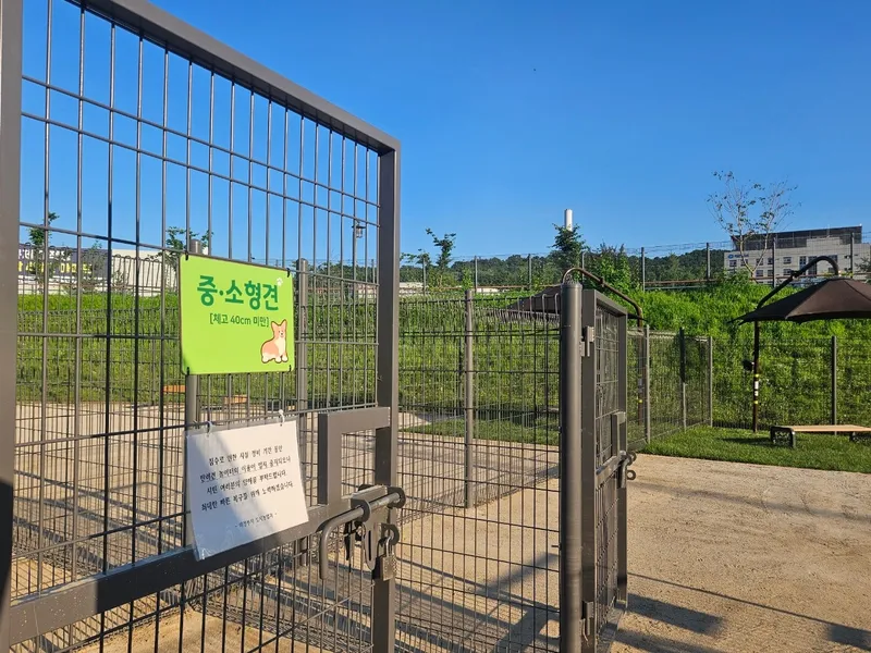 놀이터 한쪽에는 큰 개와 중·소형 개를 따로 분리할 수 있는 곳이 있습니다. 격리장도 따로 마련되어 있으니, 필요에 따라 이용할 수 있어요.또 이중 출입문, 안전 펜스 등으로 반려견의 안전을 위한 시설이 갖추어져 있습니다.