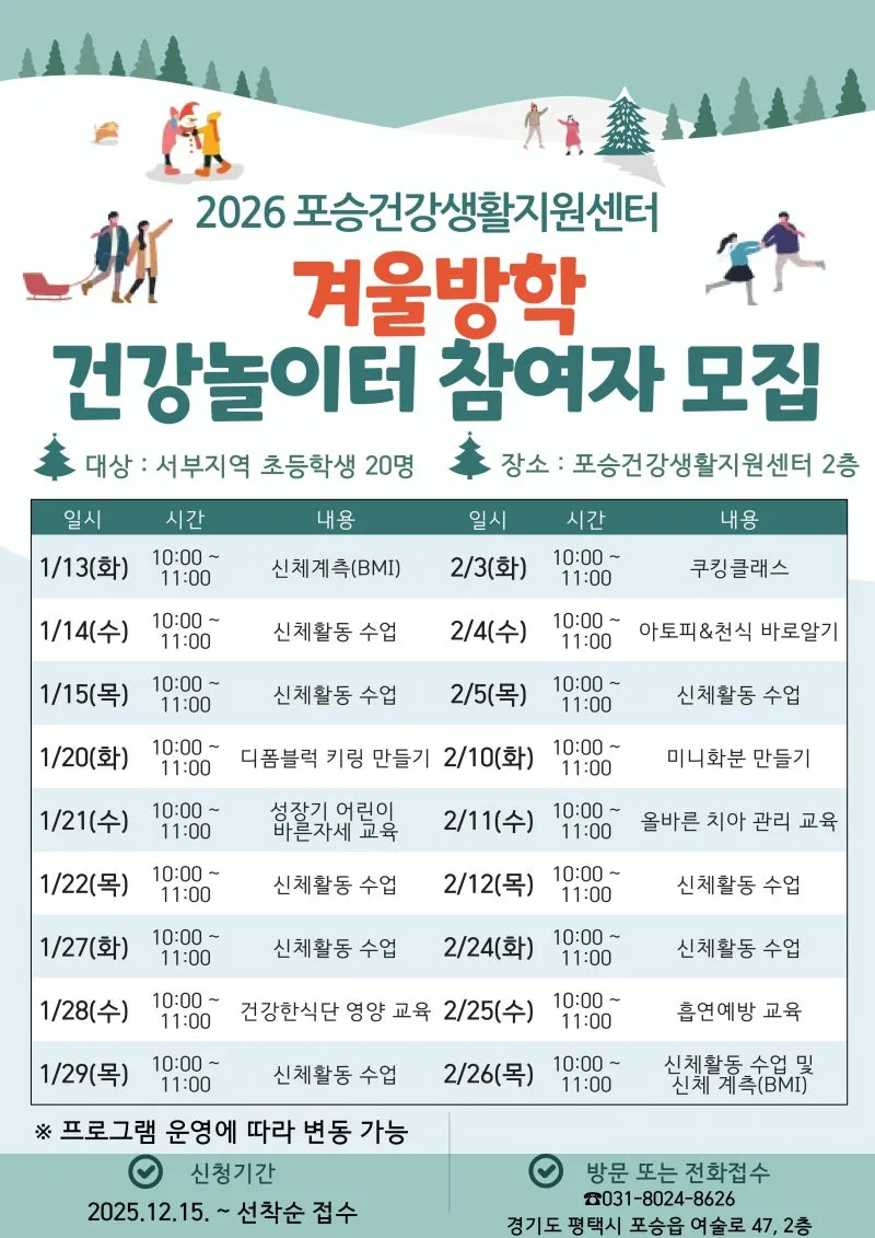 ✅ 2026 포승건강생활지원센터 <겨울방학 건강놀이터 참여자 모집> 안내