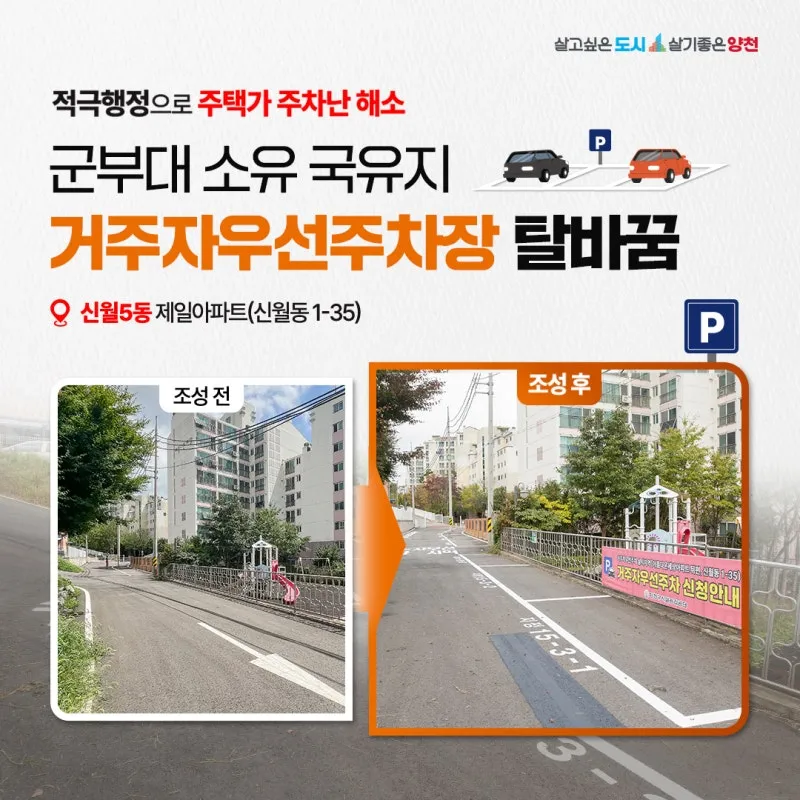<달라진 양천> 적극행정으로 주택가 주차난 해소, 군부대 소유 국유지 거주자우선주차장 탈바꿈