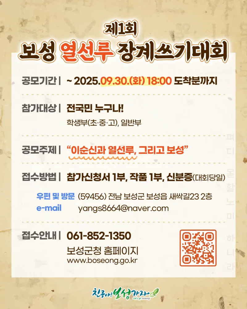 #보성군 #보성 #열선루 #이순신 #장계쓰기대회 #전국공모 #문예대회 #역사문화 #보성여행 #전남대회 #전국대회 #전국공모전 #전남공모전 #보성대회 #보성장계쓰기대회 #2025공모전 #보성소식