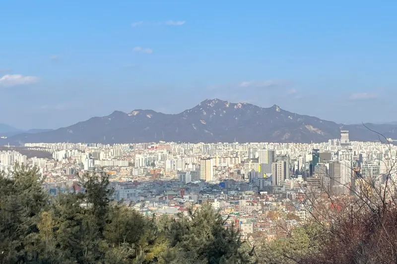 사방으로 근사한 산이 병풍처럼 둘러싸고 있는 풍경과 함께 빌딩이 가득한 도심 속 모습을 담을 수 있었습니다.