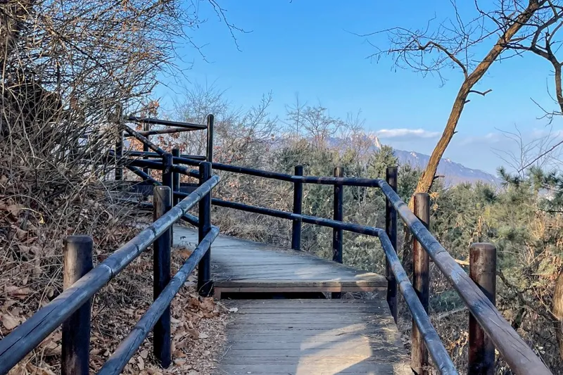 주변으로는 나무데크와 흙이 번갈아 가면서 깔려있는 북한산 둘레길이 조성되어 있어서