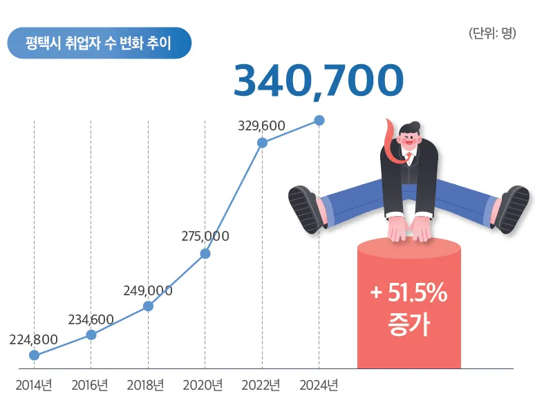 평택시의 인구 증가는 지속적인 취업자 수 증가와 밀접한 관련이 있습니다.