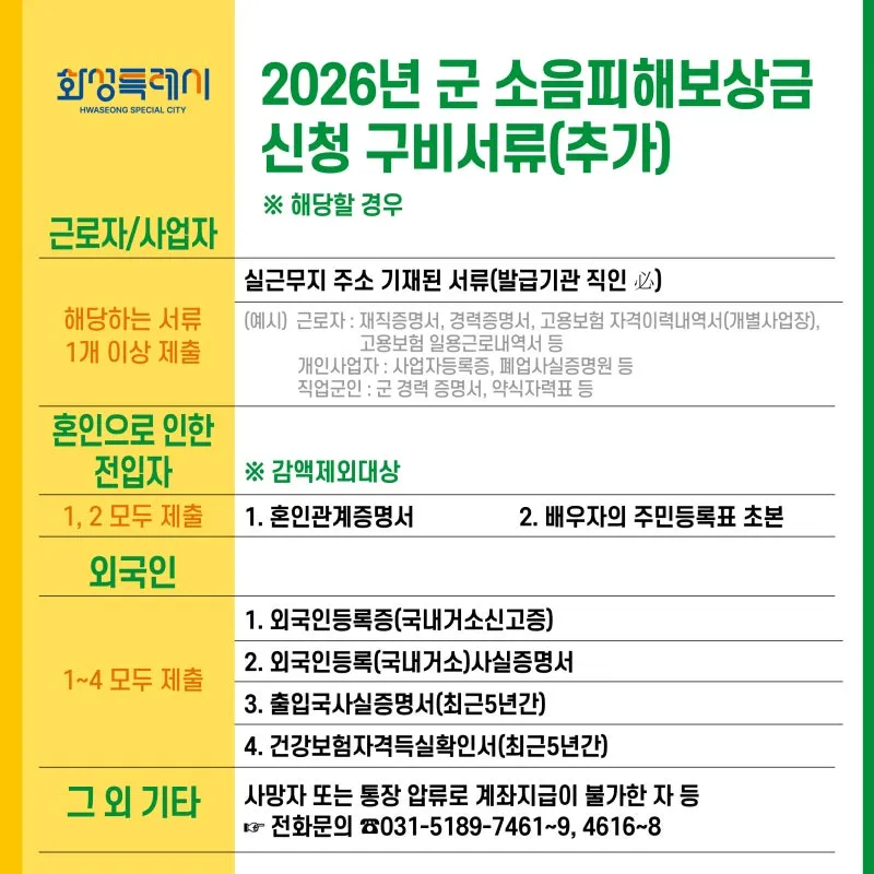 ☑️ 2026년 군 피해 보상금 신청 구비서류(추가) ※해당할 경우