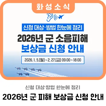 ✔ 온라인 검색 ▶ 화성시 군소음 보상금 신청