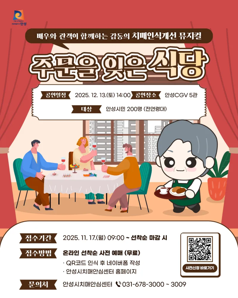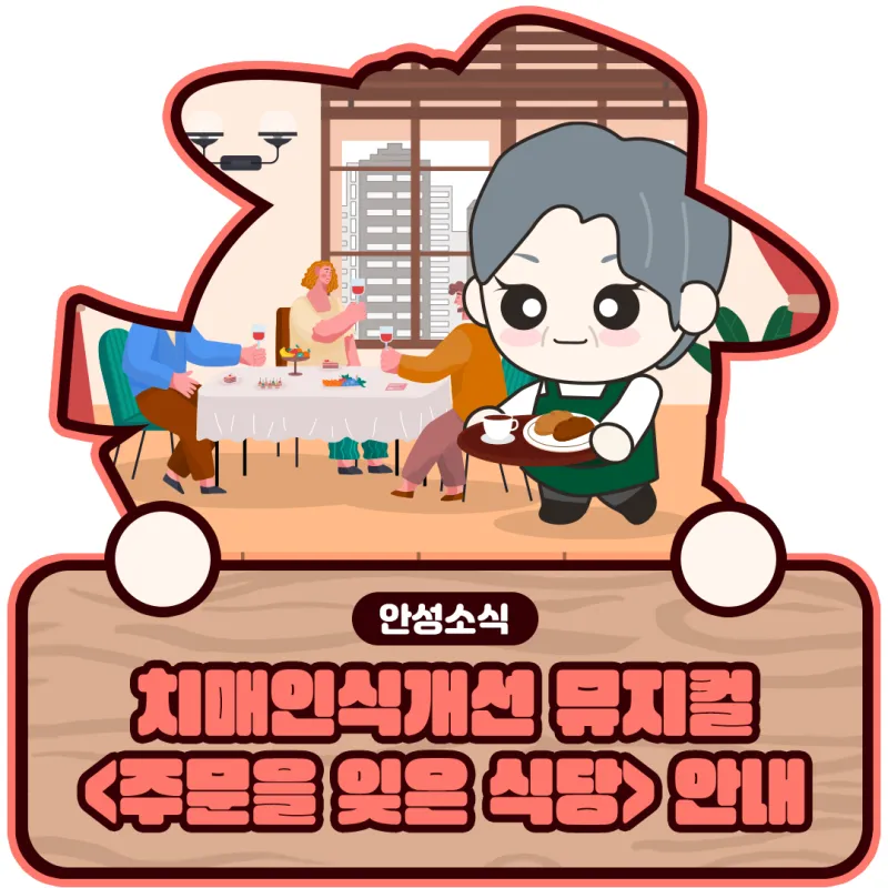 #안성시 #안성 #문화도시 #치매안심센터 #주문을잊은식당 #뮤지컬공연 #안성공연 #치매인식개선 #어르신공연 #문화생활 #안성CGV #무료공연 #연말공연 #공연소식 #안성시가볼만한곳 #가족공연