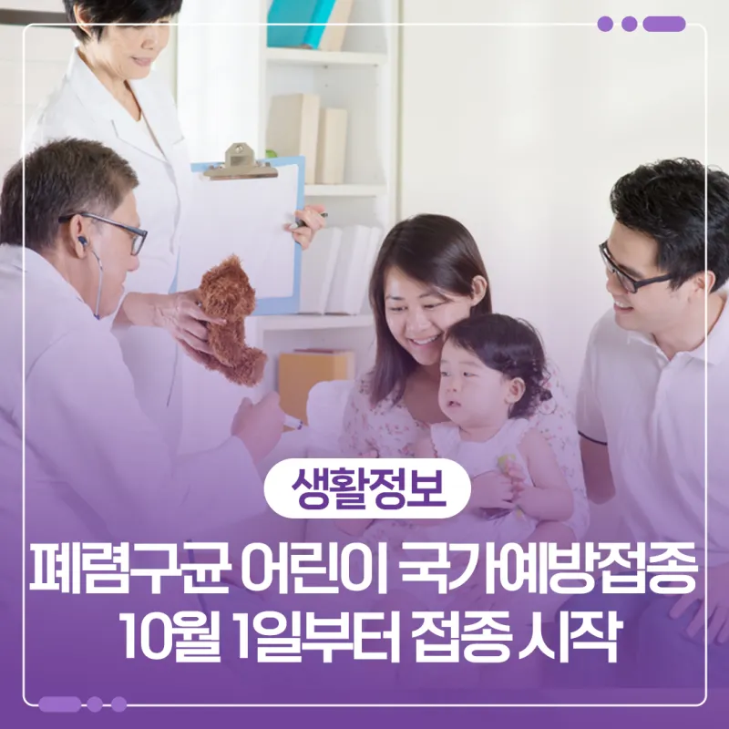 폐렴구균 어린이 국가예방접종 10월 1일부터 접종 시작