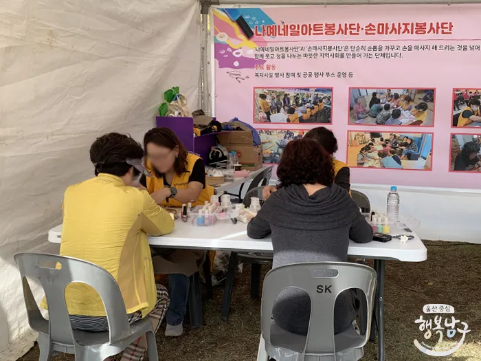 복지시설 행사 참여 및 공공 행사 부스 운영 등의 활동을 펼치는 나예네일아트봉사단·손마사지봉사단이 이날 현장을 찾아 다양한 재능 기부를 펼쳐 주셨습니다.